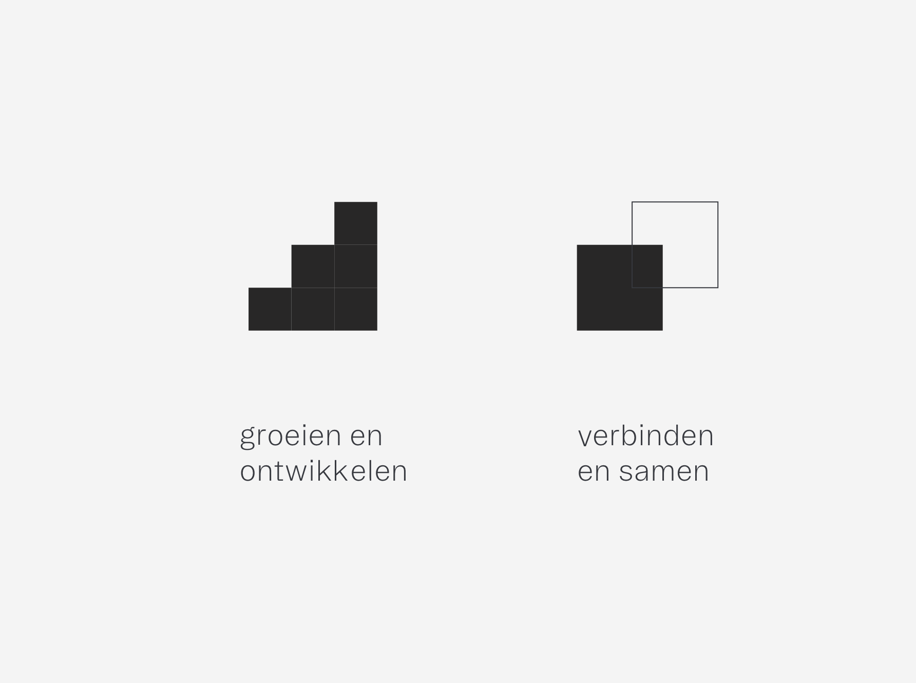 De vormtaal van de merkidentiteit van Hitended bestaat uit kleurvlakken en lijnen die elkaar overlappen. Hiermee visualiseren we de belangrijkste kernwaarde van Hitended: verbindend.
