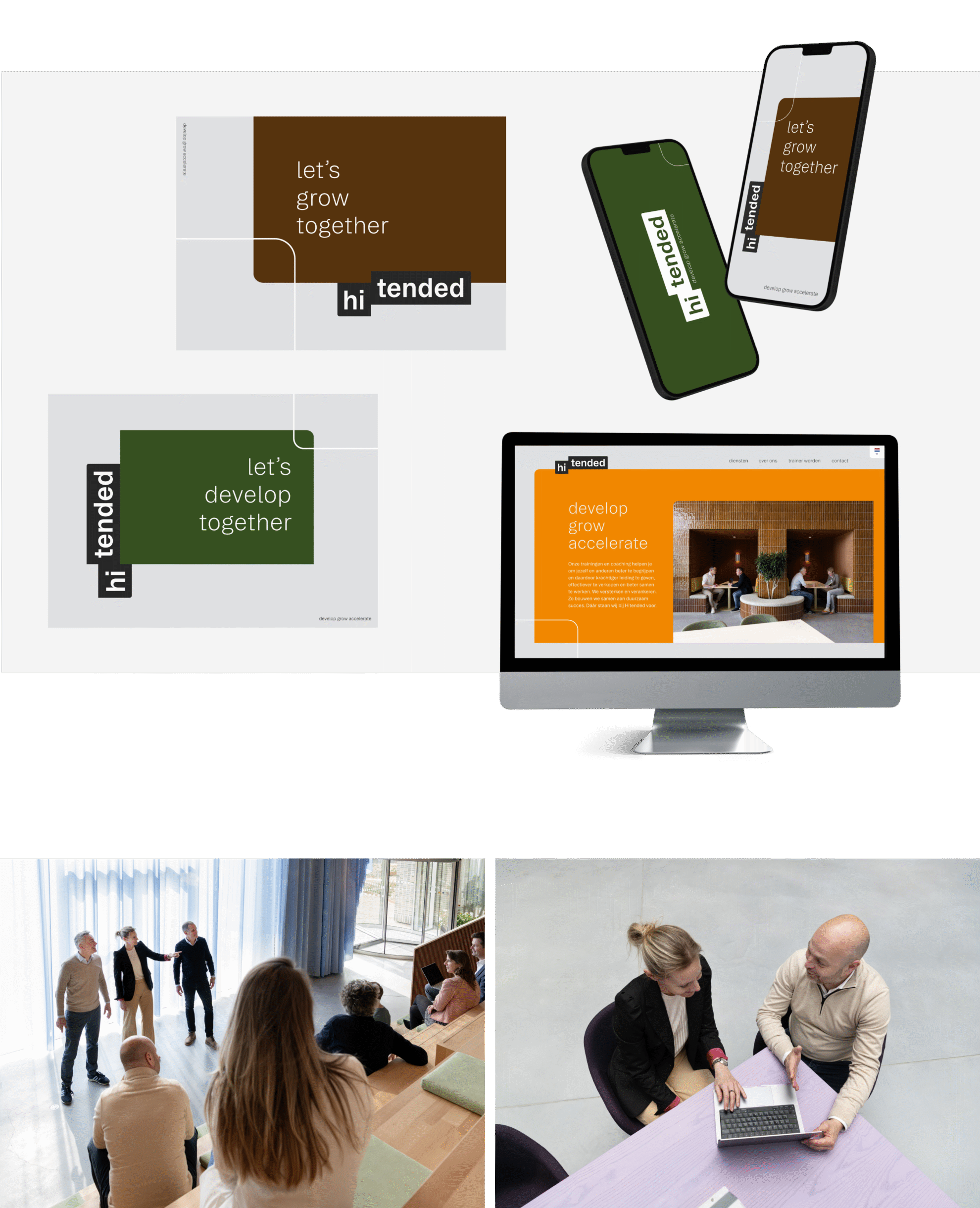 De merkidentiteit ademt de vier kernwaarden van Hitended: verbindend, deskundig, energiek en doortastend.