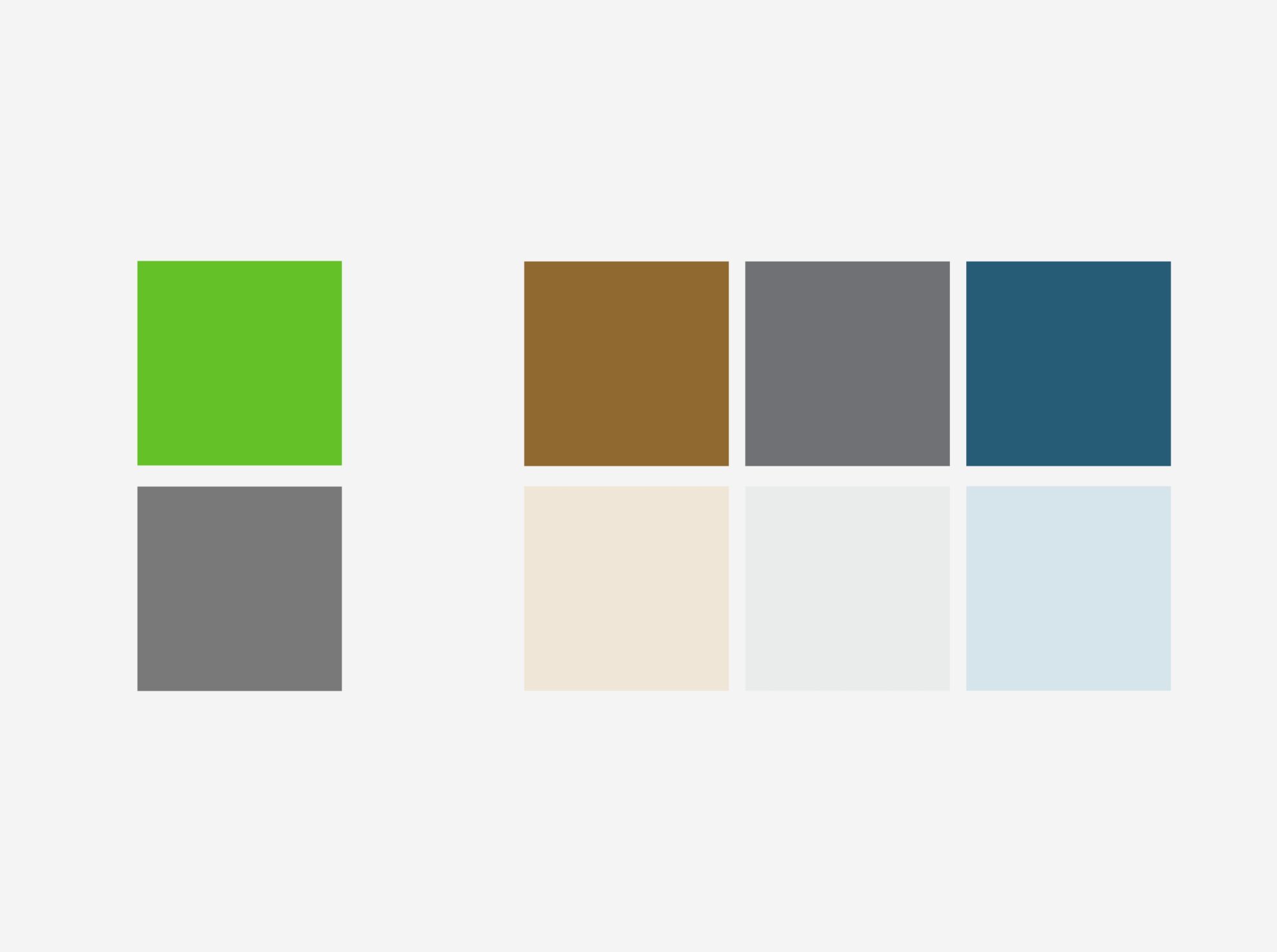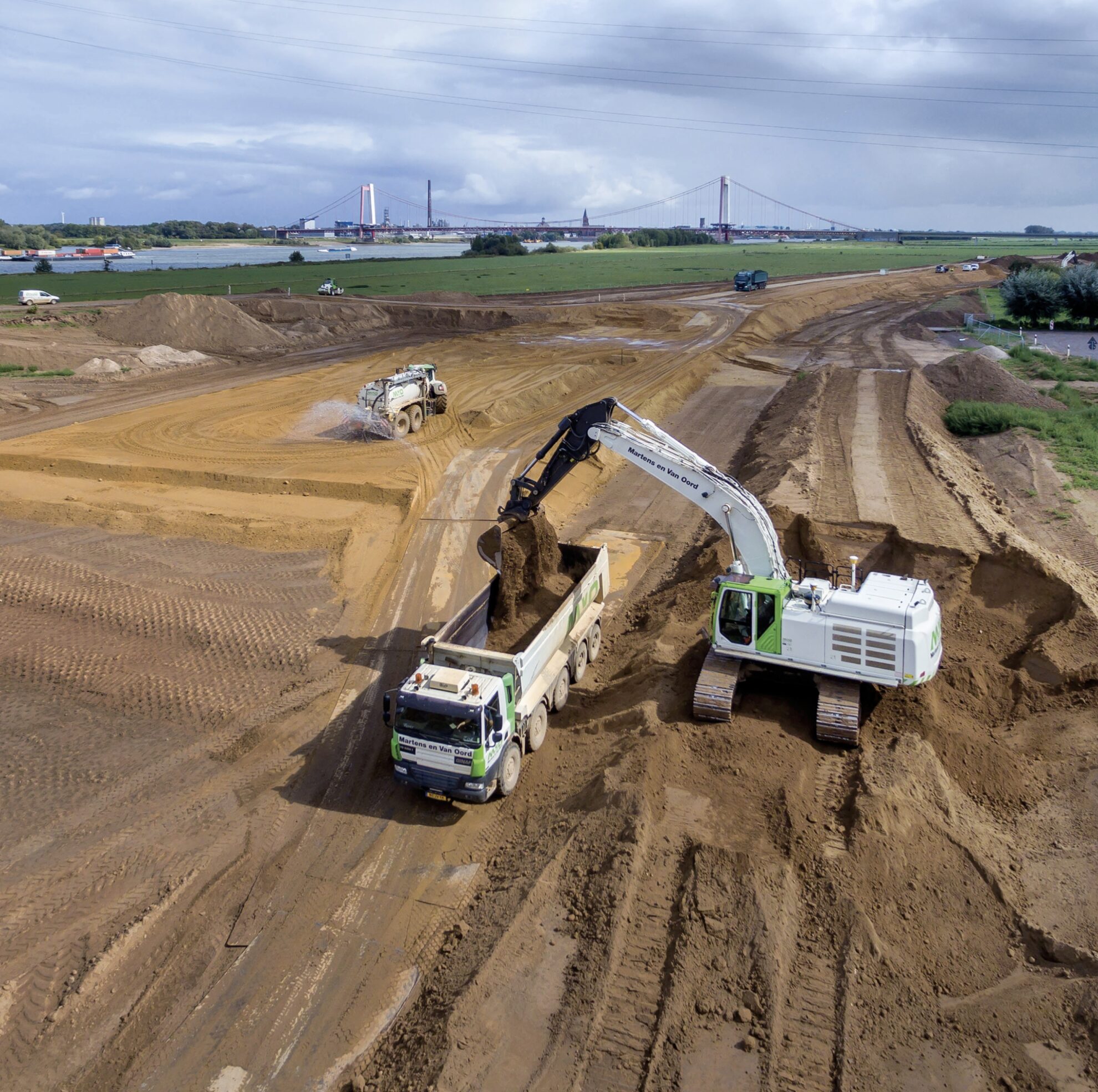 Waar Martens en Van Oord alleen met groen en grijs werkte hebben we de kleuren van hun werkgebieden toegevoegd aan het palet: bruin voor grond, grijs voor weg en blauw voor waterbouw.