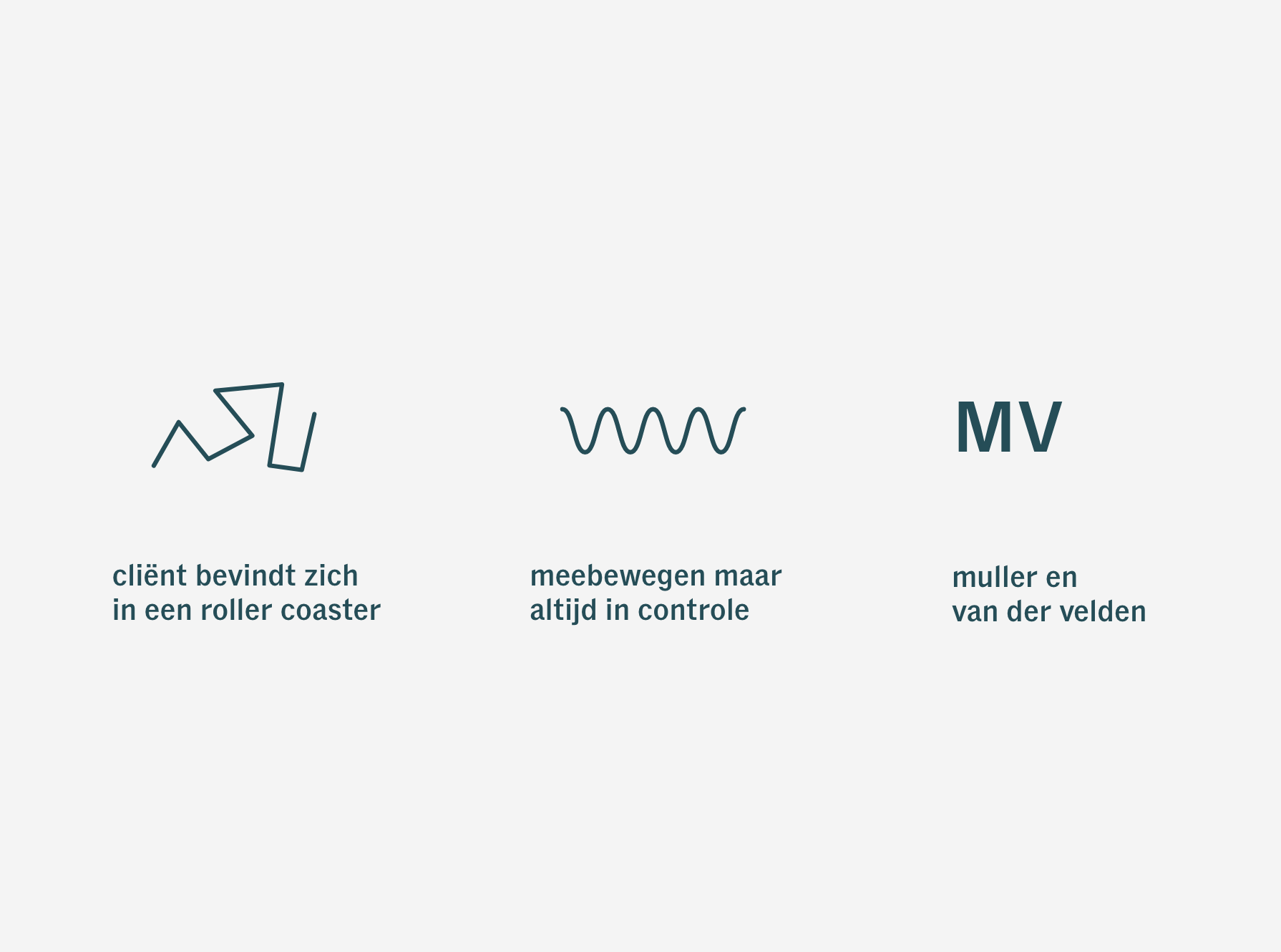 Daarnaast is het een monogram van de letters M (Muller) en V (Velden) om het persoonlijke karakter van het kantoor te benadrukken.